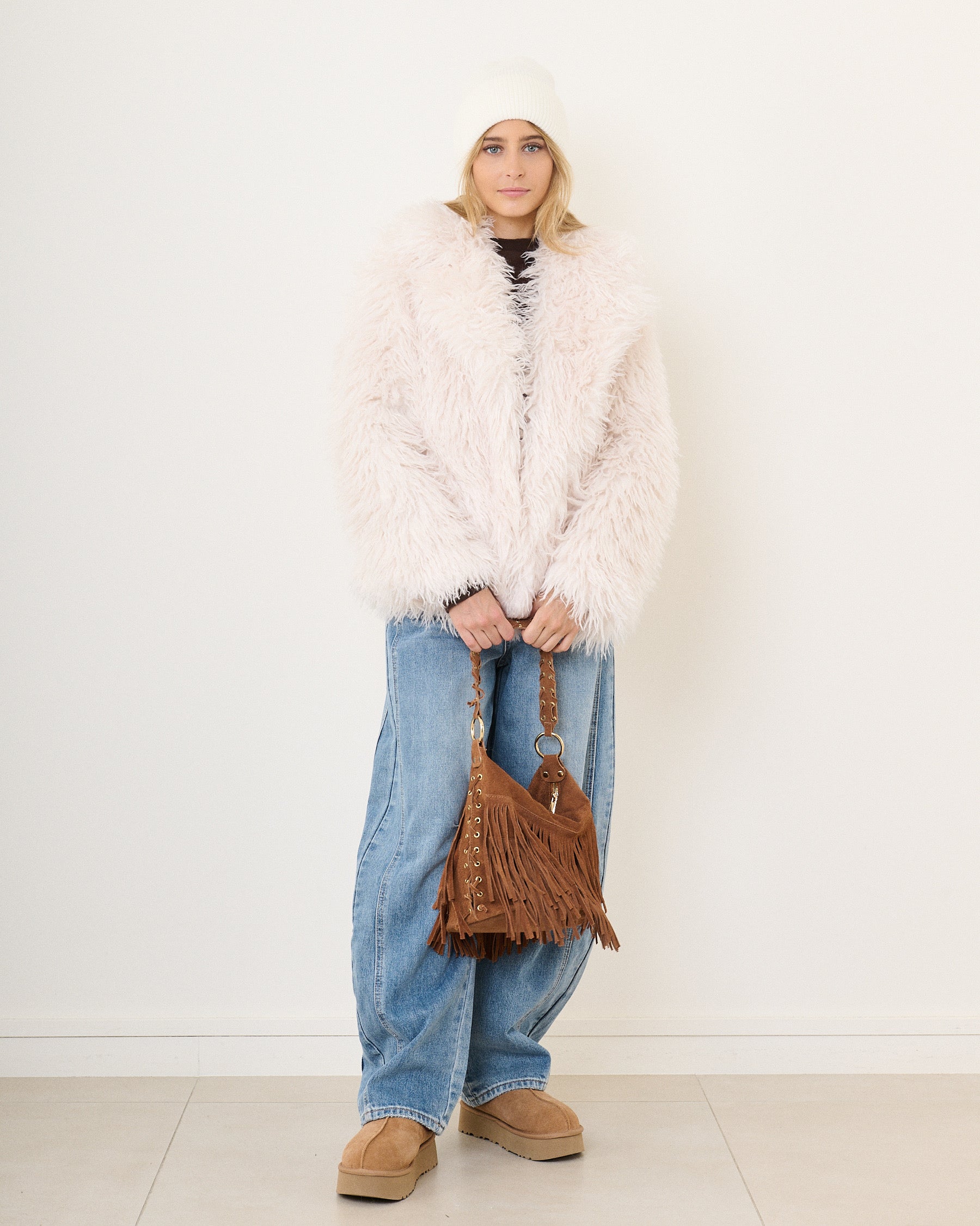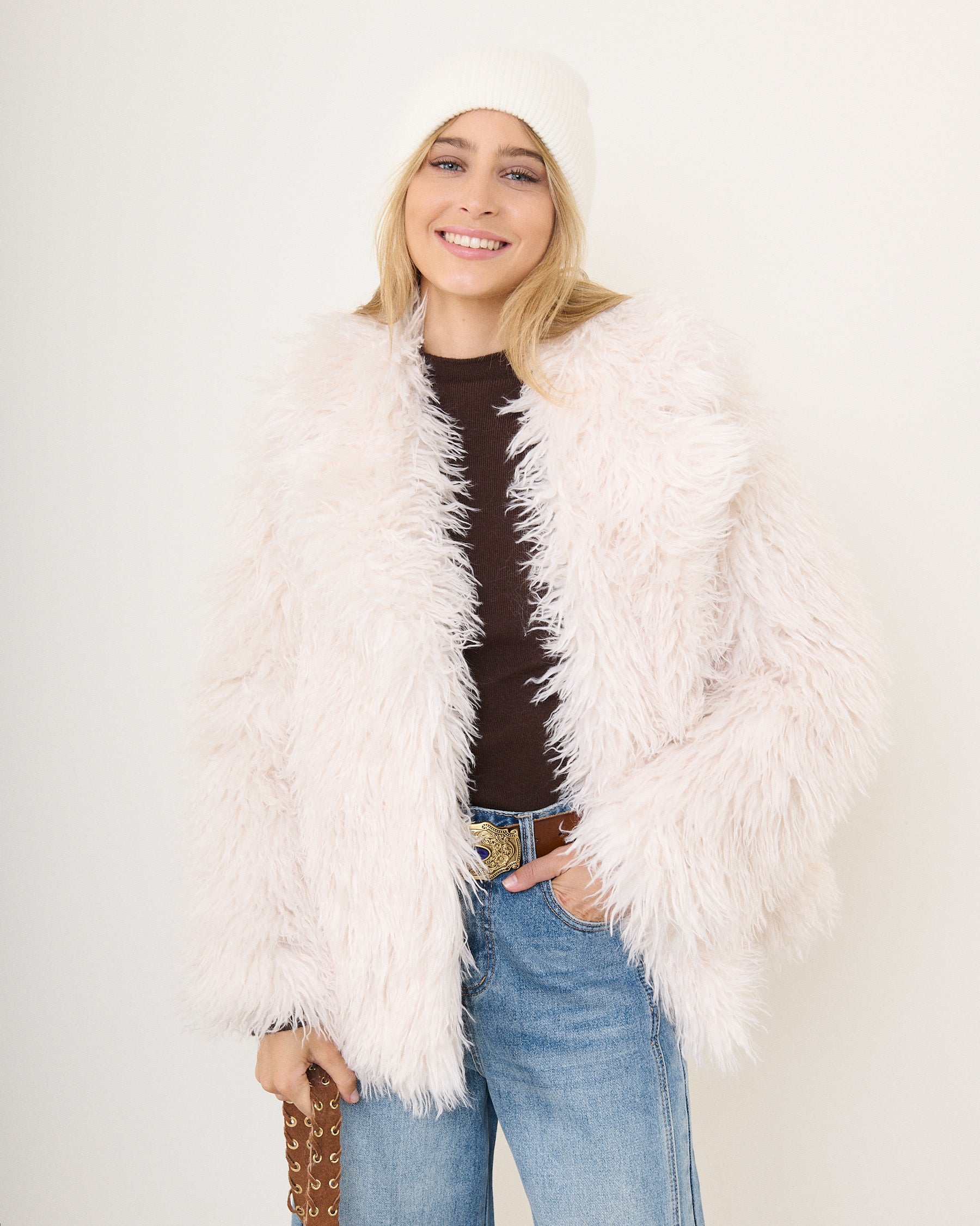 Veste fausse fourrure Écru